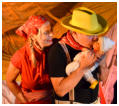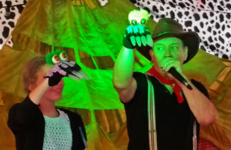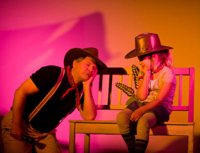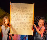 Reservering *  De voorstelling is voor kinderen vanaf 4 jaar. *  De voorstelling duurt ongeveer 60 minuten. *  Vanwege het type spel dat gespeeld wordt (veel beweging     en meespelende kinderen) is een lege en schone speelvloer     nodig van  ongeveer 7 x 5 meter. *  We nemen onze eigen geluidsapparatuur mee. *  De opbouw van het decor duurt 1,5 uur.     Het afbouwen ongeveer 1uur. *  Kosten per voorstelling: €400, exclusief 9% BTW en     €0,30 per km reiskosten vanaf  Houten. Een 2e voorstelling op     dezelfde plek en dezelfde dag is voor de helft van de prijs. Heb je interesse om ons uit te nodigen de voorstelling te komen spelen, neem dan contact met ons op via de contactpagina. Meer actuele berichten, foto’s en reacties kun je vinden op