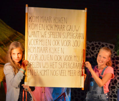 “De voorstelling is ook een aanrader bij een jubileum of afscheid. De betreffende persoon mag dan even schitteren in het verhaal door het Supergraan te zaaien. Het Supergraan staat dan symbool voor al die jaren van dienstbaarheid en inzet van talenten.”